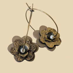 Fleurs en cuir aux tons Taupe et Doré , découpées, ajustées et collées par mes soins