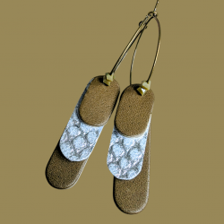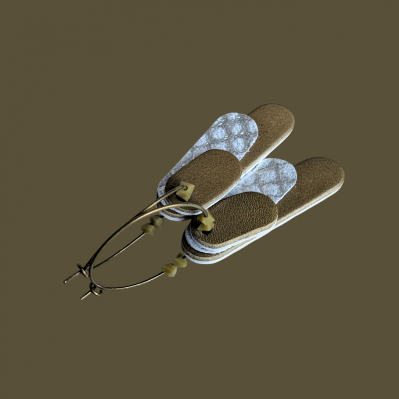 Créoles habillées de cuir et de perles de verre Kaki