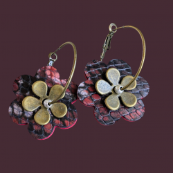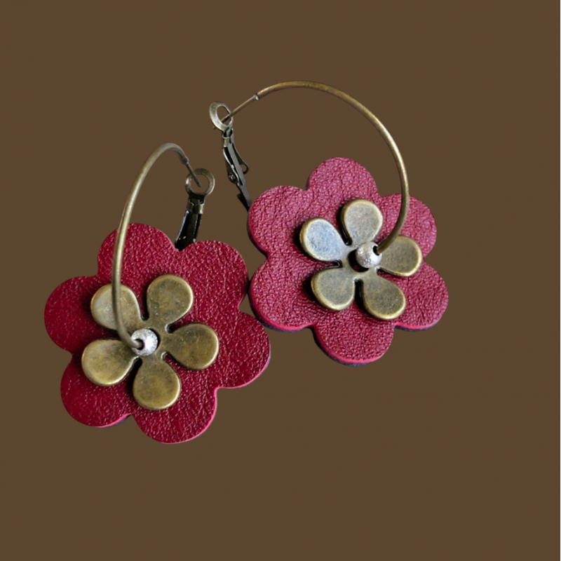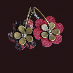 2 cuirs, 2 grains différents, fleurs en cuir découpées, ajustées et collées par mes soins