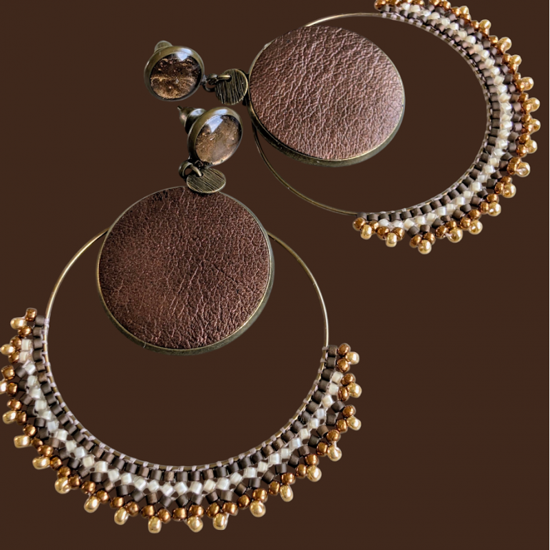 Tissage de perles en verre brun, Ivoire, Doré réalisé par mes soins