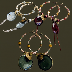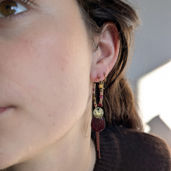 Magnifiques boucles d'oreilles, Créoles habillées de petites perles japonaises, perles de verre et perles hématite