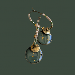 Magnifiques boucles d'oreilles, Créoles habillées de petites perles japonaises et perles hématite