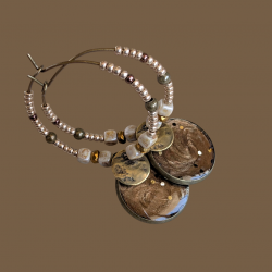Pendentifs en forme de goutte : acrylique Brun nacré et résine réalisées par mes soins