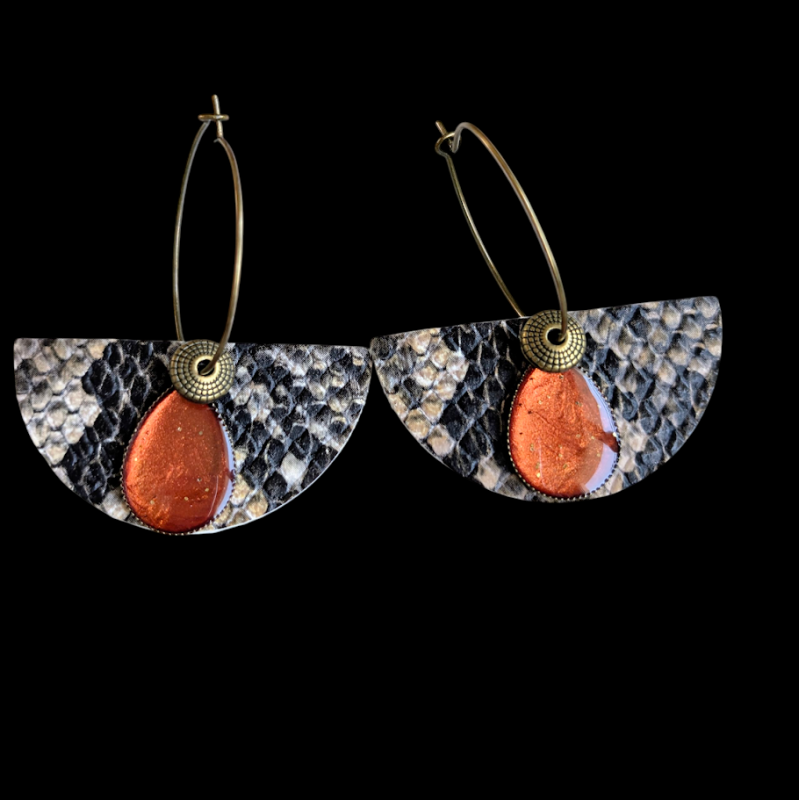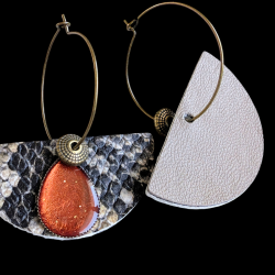 2 cuirs, 2 grains différents et 2 couleurs : Effet serpent Noir/Beige et Beige ...découpés, ajustés et collés par mes soins