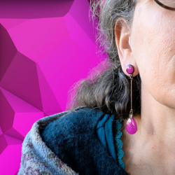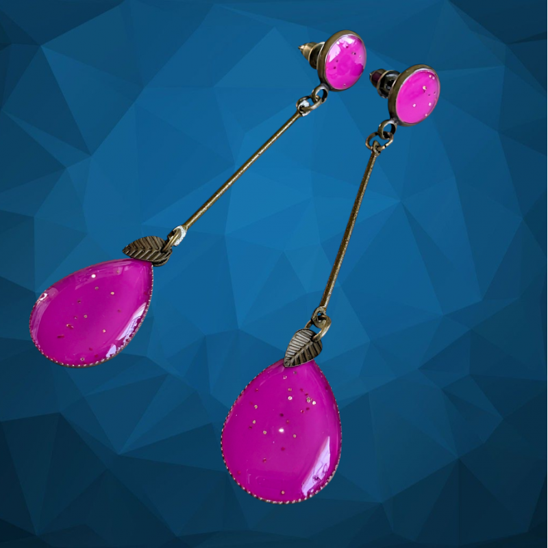 Boucles pendantes...fines...délicates...Résine et couleur acrylique (Fuchsia foncé) réalisées par mes soins...Paillettes pour la touche lumineuse !