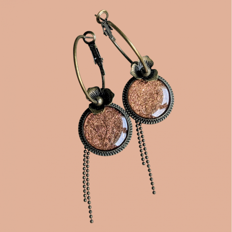 Créoles en laiton finition Bronze : 3 cm de diamètre