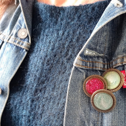 Une broche ronde en laiton finition Bronze...féminine...raffinée...Brillance et paillettes pour parfaire votre tenue